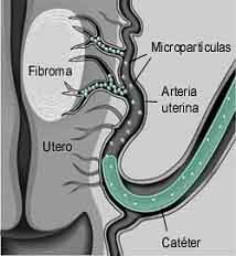 En los últimos años, una nueva técnica se ha incorporado al arsenal terapéutico de los miomas. La embolización de las arterias uterinas que irrigan (aportan sangre) el mioma consiste en la oclusión total y de forma permanente de dichas arterias. La embolización produce falta de flujo de sangre en el tumor y reducción importante del tamaño tumoral. No necesita anestesia general ni sedación y requiere 12‑36 horas de hospitalización. Es necesaria una potente y continuada analgesia que se puede realizar por vía epidural. Con esta técnica se tratan todo tipo de mioma uterinos.