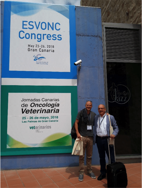 De Viena volé directamente a Las Palmas de Gran Canaria al Congreso Europeo de Oncología Veterinaria. ¡Qué sorpresa! Hay todo un mundo de intervencionismo en el tratamiento de los tumores de nuestras mascotas. Quimioembolizaciones de tumores, drenajes, dobles J, etc. Chick Wais, del AMC (Animal Medical Center) de Nueva York es un veterinario intervencionista formado con algunos de los mejores radiólogos intervencionistas americanos. Tiene una sala completamente equipada y trata 1200 “pacientes” al año. Chick dio una charla interesantísima y yo hice de su telonero con una charla en la que expliqué a los veterinarios europeos en qué consiste y cuáles son los tratamientos intervencionistas en humanos. En Canarias mi anfitrión fue el Profesor de Patología Animal, Enrique Rodríguez Graus de la Facultad de Las Palmas. Pudimos hablar detenidamente y se establecieron líneas para potenciales colaboraciones entre la Universidad de Las Palmas y SERVEI. Modelos, animales, cursos de formación, apoyo logístico mutuo…